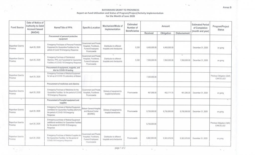 Report on Fund Utilization and Status of Programs /Projects/Activity Implementation for the month of June 2020