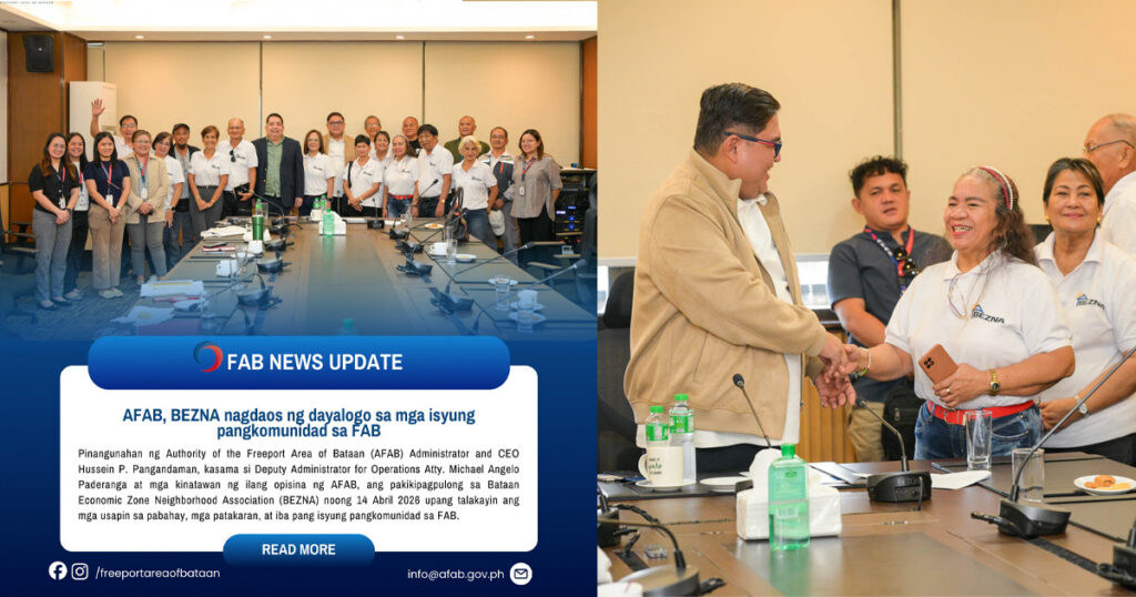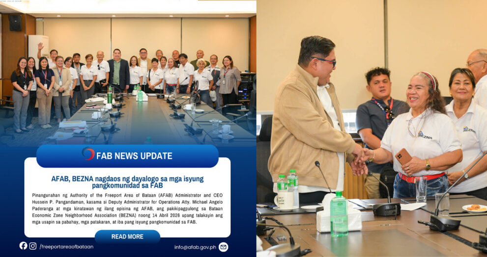 The Authority of the Freeport Area of Bataan (AFAB) and the Bataan Economic Zone Neighborhood Association (BEZNA) have agreed to jointly form a technical working group (TWG) to resolve delicate issues that had been troubling both parties.   The plan to form a TWG was finalized during a meeting of AFAB and BEZNA last week […]