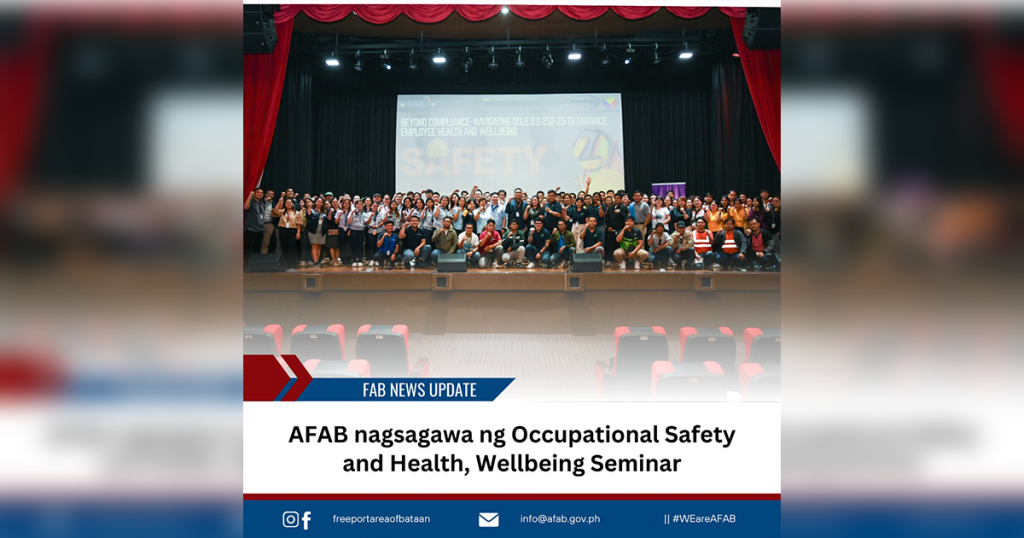 The Authority of the Freeport Area of Bataan (AFAB), through its Community Services Department Labor Center Division conducted a seminar, “OSH and Wellbeing Seminar: Beyond Compliance – Navigating DOLE 252-25 to Enhance Employee Health and Wellbeing” on August 11, 2025 at the AFAB Auditorium.
