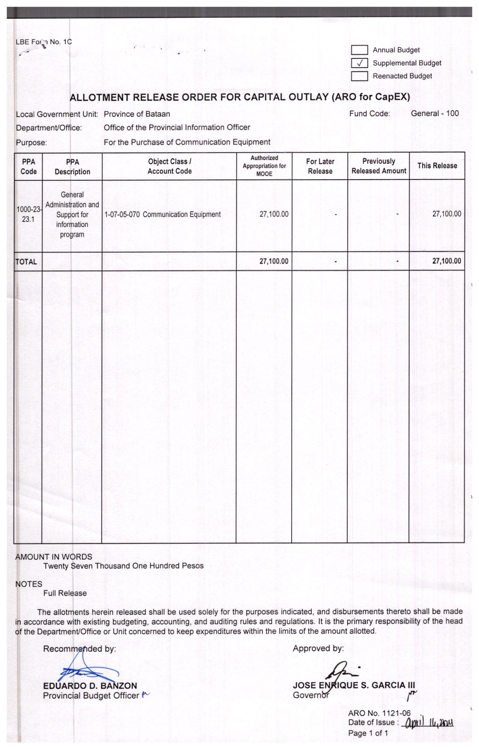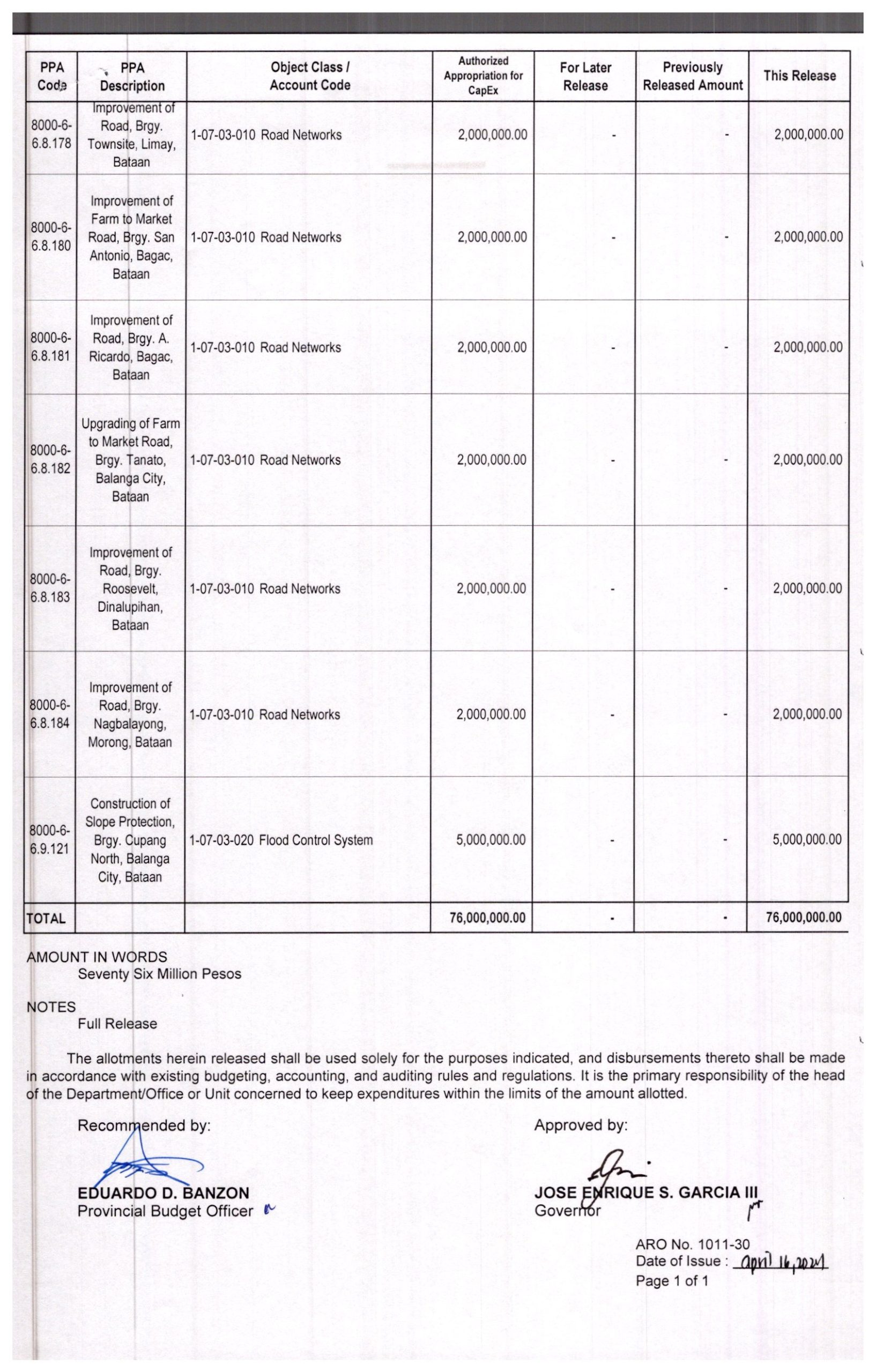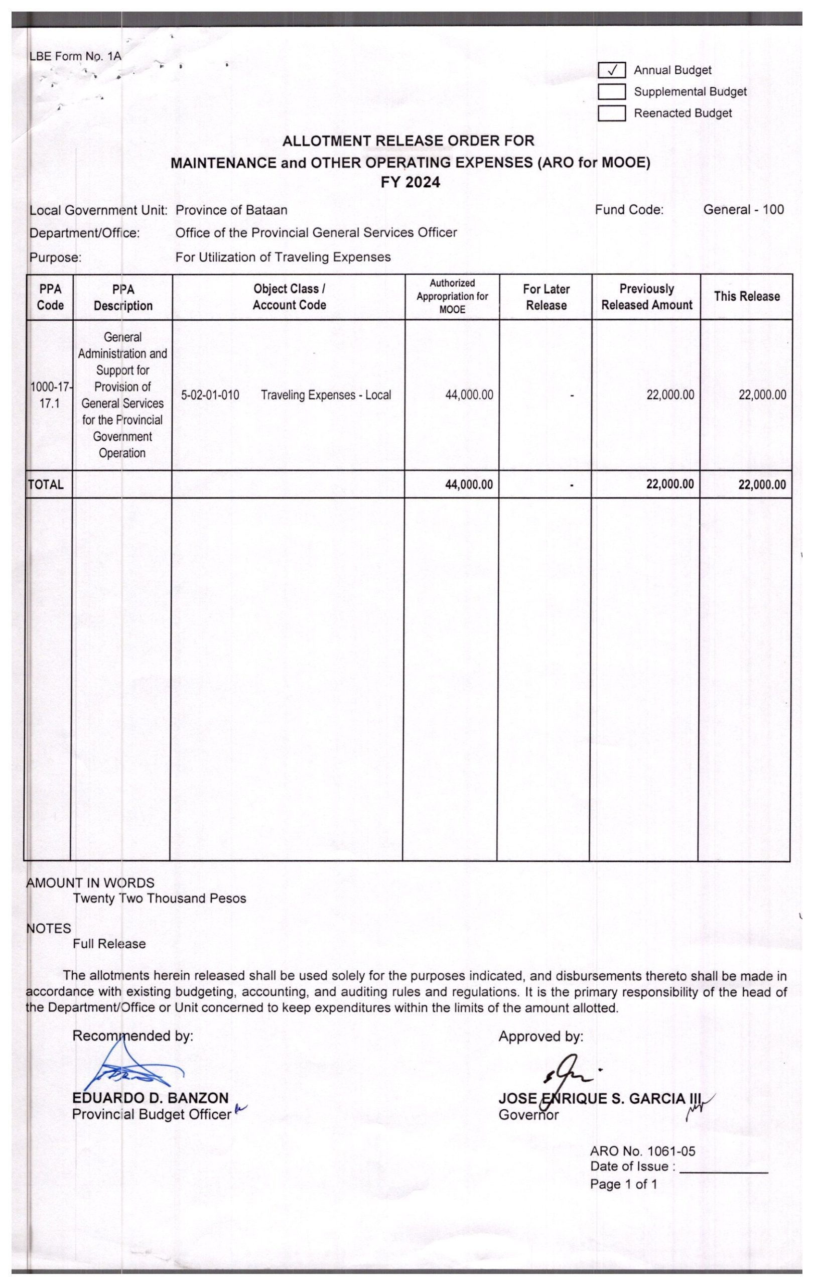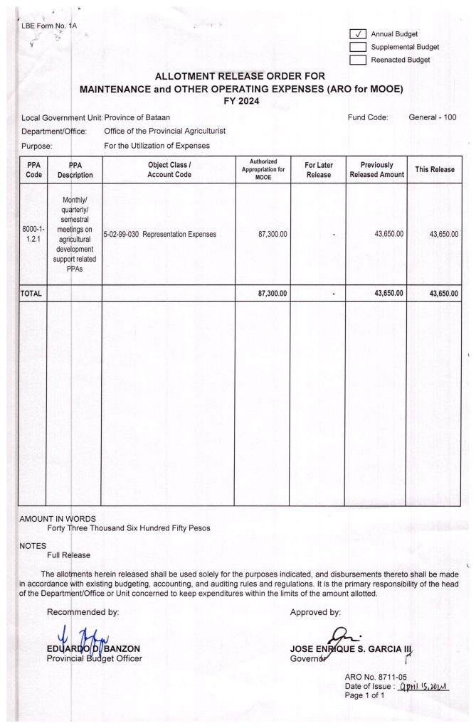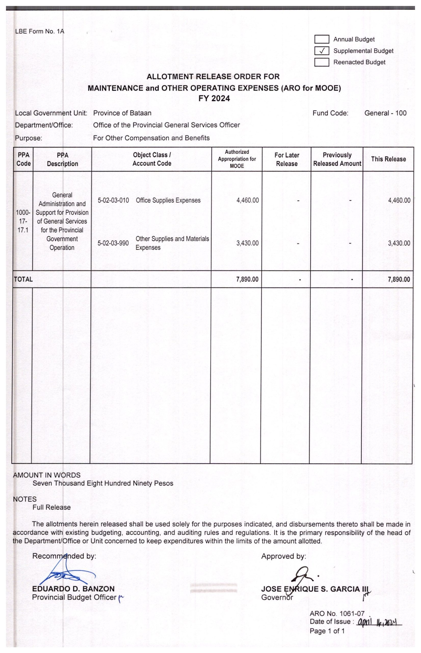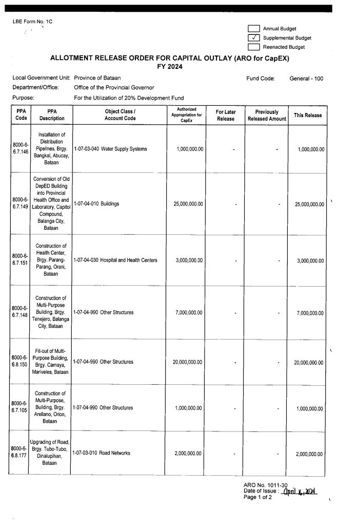 Allotment Release Order FY 2024 of Supplemental Budget No.2 FY 2024