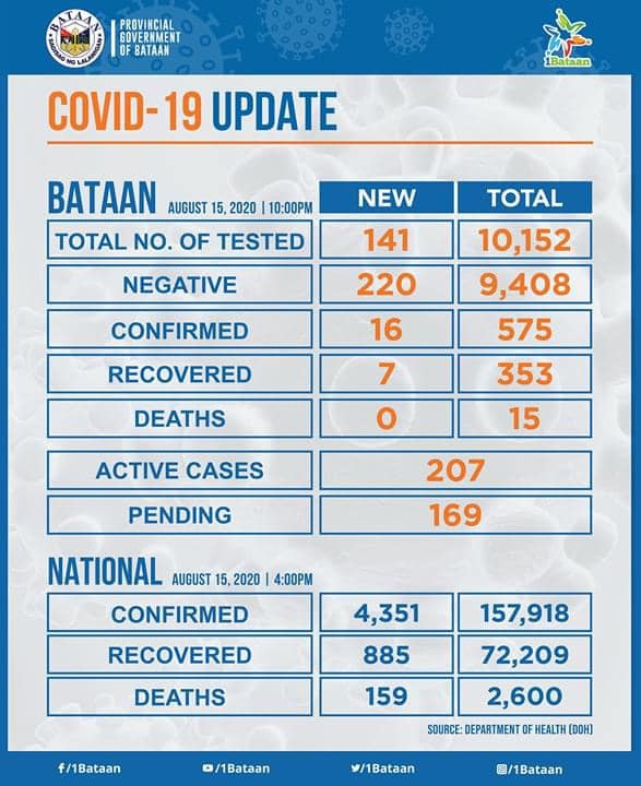 Ang bilang ng active cases ay 207 at labing lima (15) ang pumanaw na. Nasa 169 ang naghihintay ng resulta ng test; 9,408 ang nagnegatibo na at 141 ang mga bagong natest. Mula po noong ika-31 ng Enero hanggang sa kasalukuyan ay 10,152 na po ang natest sa ating Lalawigan.