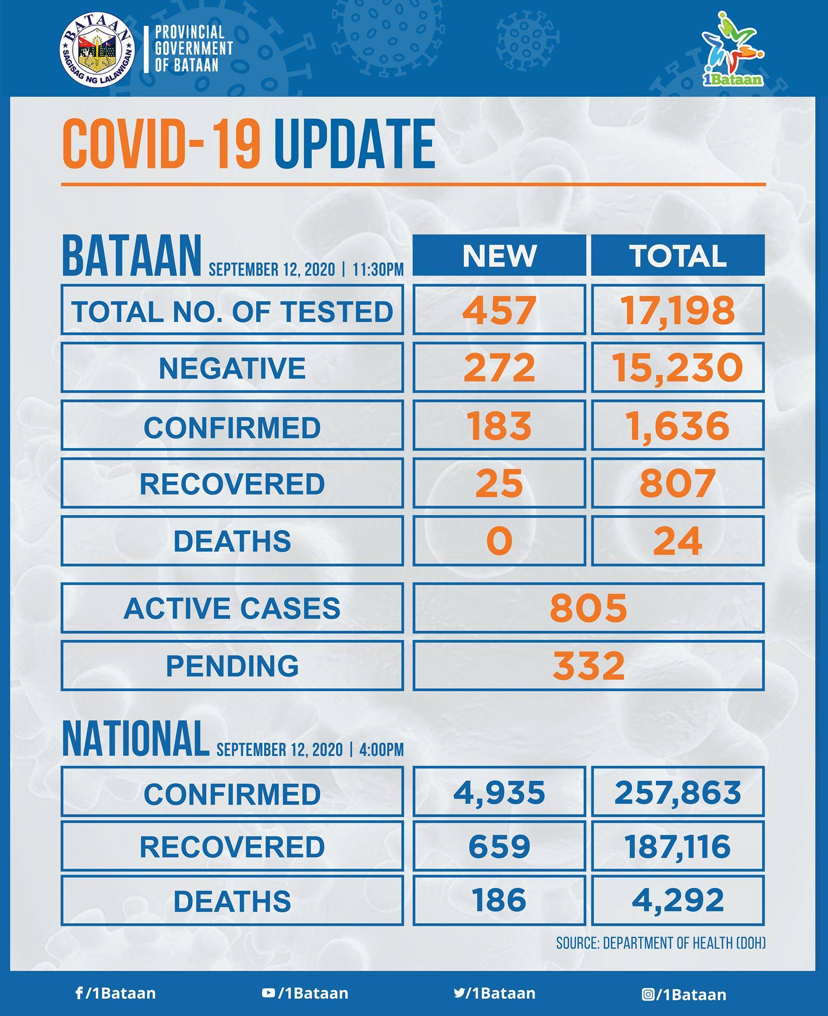 COVID-19 UPDATE: Sa huling ulat ng PHO kahapon, ika-12 ng Setyembre, umabot na po sa 1,636 ang bilang ng mga nagpositibo sa COVID-19 sa ating Lalawigan, dalawampu’t lima (25) ang mga bagong nakarecover at 272 ang nagnegatibo ang resulta ng test.