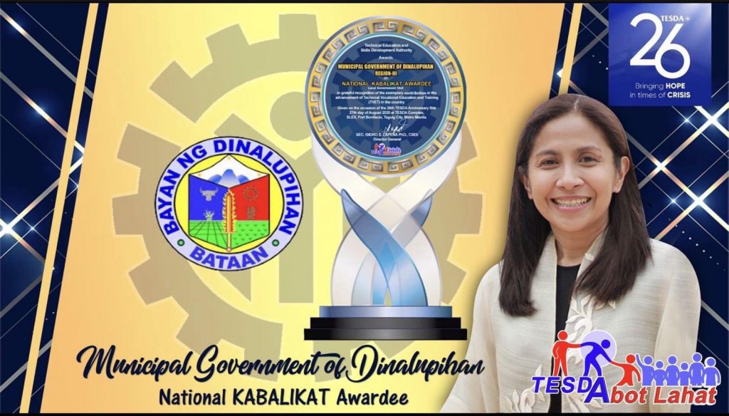 Binigyang pagkilala ang yunit pamahalaang lokal ng Dinalupihan sa ginanap na ika-26 na taong Anibersaryo ng TESDA bilang “TESDA Kabalikat National Awardee”. Ayon kay Dinalupihan Mayor Maria Angela “Gila” Garcia, ito ay isang pagpapatunay na ang isang community based program tulad ng Bahay Pagbabago ay nakapagbigay ng pag-asa sa panahon ng krisis sa buhay ng kanyang mga kababayan.