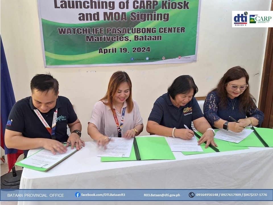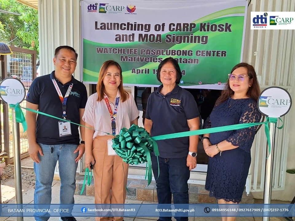 The Department of Trade and Industry (DTI) has initiated a new venture in Mariveles, with the inauguration of a Comprehensive Agrarian Reform Program (CARP) kiosk at the Watchlife Pasalubong Center.