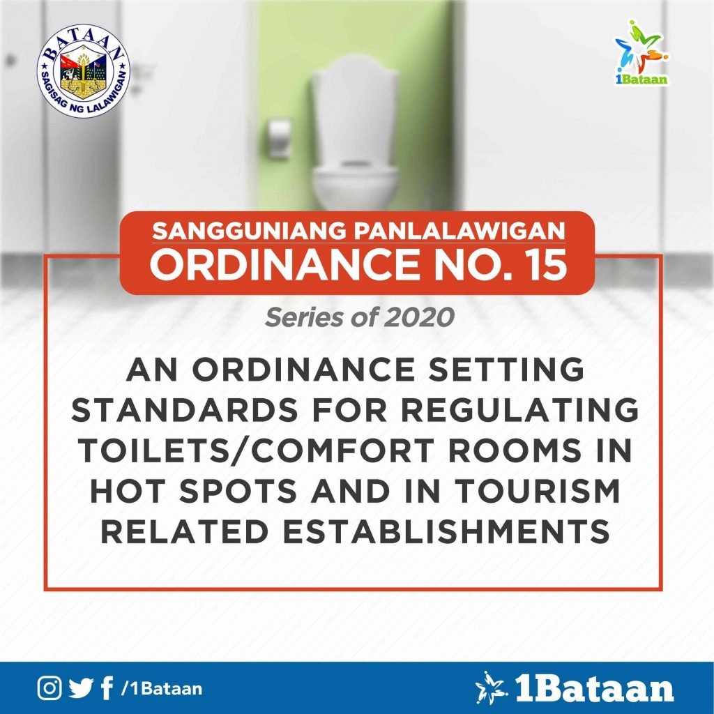 To further ensure the health and safety of Bataan residents towards the better and new normal, Gov. Abet Garcia signed Provincial Ordinance no. 15 s2020 entitled “An Ordinance Setting Standards for Regulating Toilets/Comfort Rooms in Hotspots and in Tourism-related Establishments”.