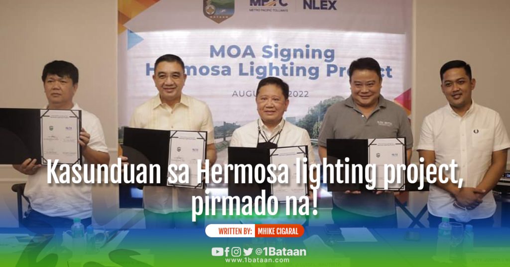 Pormal nang nilagdaan ang Memorandum of Agreement sa pagitan ng LGU-Hermosa, NLEX Corporation at Metro Pacific Tollways Corporation para sa Hermosa Lighting Project, sa Hermosa, Bataan, Mierkoles ng umaga.
