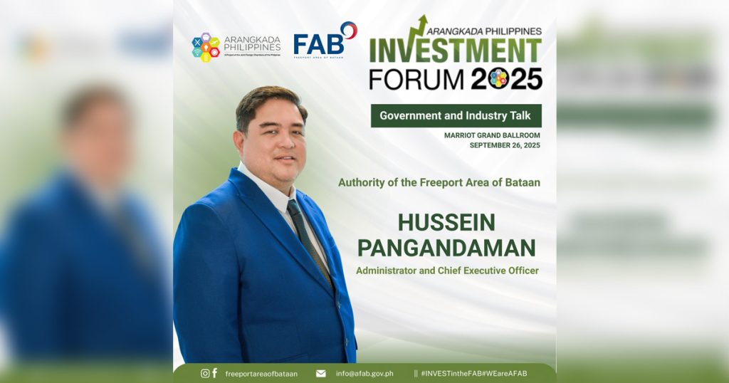 Ibinahagi ni Authority of the Freeport Area of Bataan (AFAB) Administrator at CEO Hussein P. Pangandaman na hindi lamang insentibo ang nagbibigay ng lakas sa isang economic zone, kundi ang mga konkretong proyektong nakatuon sa pangmatagalang pag-unlad. Inilahad niya ito sa Arangkada Investment Forum 2025 na ginaganap sa Marriott Grand Ballroom, Pasay City ngayong ika-25 at 26 ng Setyembre.