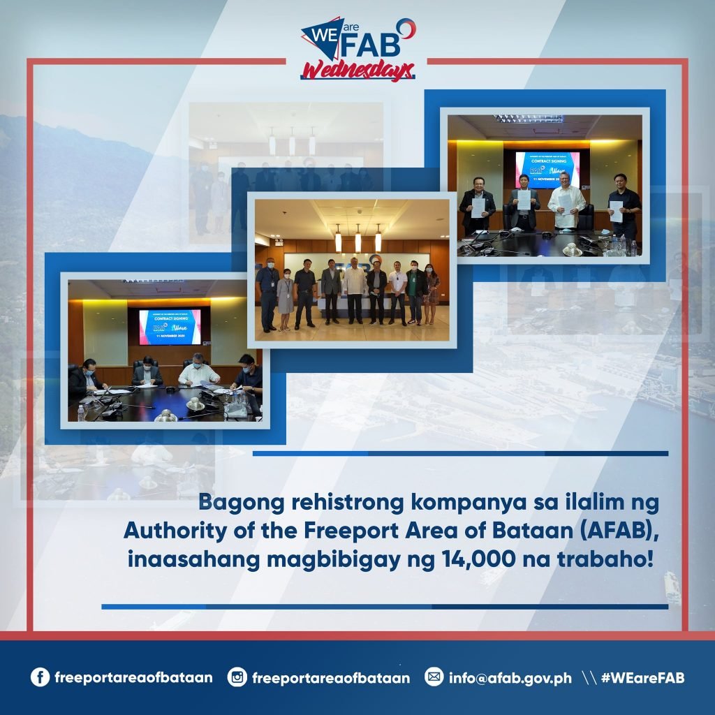 THE Authority of the Freeport Area o Bataan (AFAB) recently signed a memorandum of agreement with the iWave Advanced Research Group which preferred to put up business at the sprawling Freeport Area of Bataan.