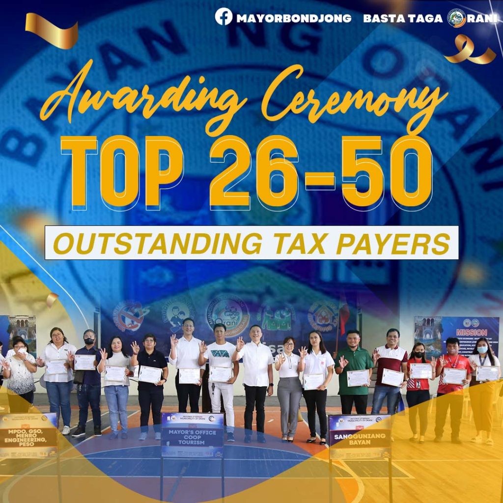 “The LGU Orani extends its congratulations and heartfelt thanks to the Top 26-50 taxpayers for their outstanding contributions.