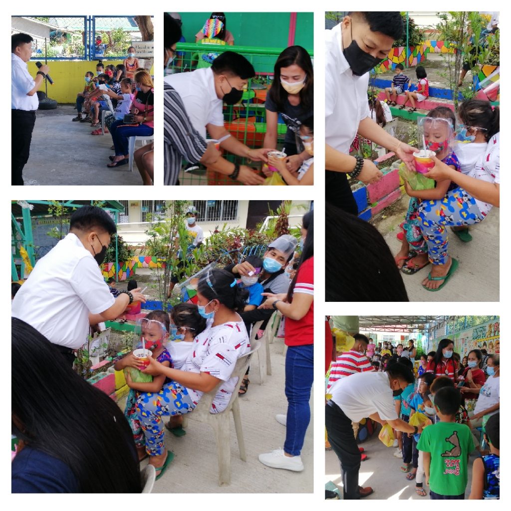 Masaganang inalmusal ng mga bata ang champorado, kalakip ang regalo sa kanila ni Mayor Aida Macalinao na mga mansanas, gatas at biscuits, na lalong nagpasaya sa mga bata kasama ang kanilang mga magulang.