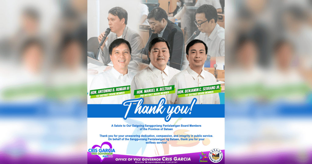 Ang Sangguniang Panlalawigan sa pamumuno ni Vice Gov Cris Garcia ay nagpaabot ng taus-pusong pasasalamat sa mga outgoing board members sa kanilang mga kontribusyon, serbisyo at dedikasyon sa paggawa ng mga makabuluhang batas para sa ikabubuti at pag-unlad ng lalawigan.