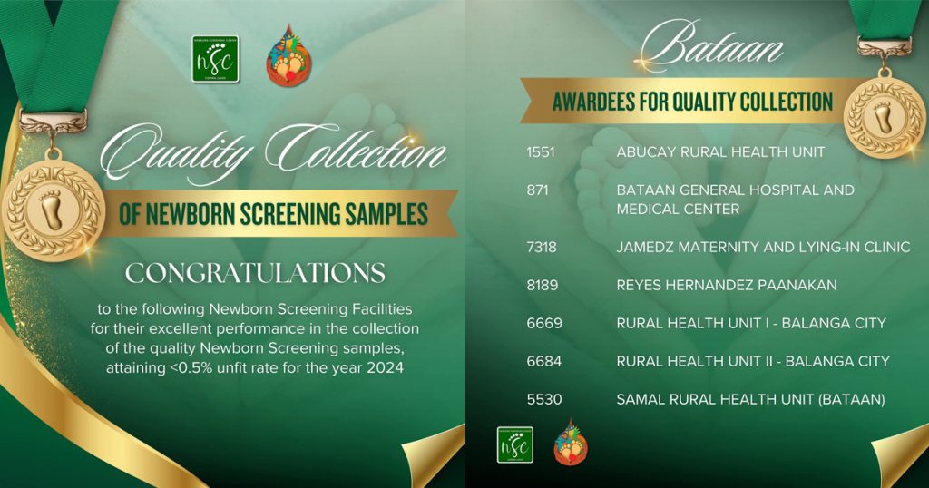 Samal Super Health Center has been recognized for Quality Collection of Newborn Screening Samples. The center has been named one of the Awardees for Quality Collection of Newborn Screening Samples.