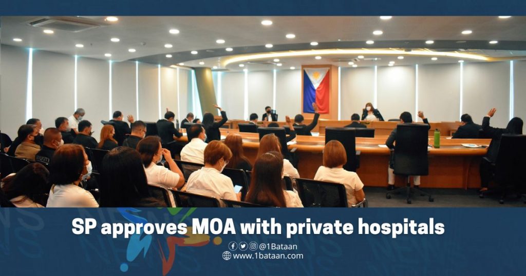 The Sangguniang Panlalawigan (SP) ng Bataan, presided by Vice Gov. Cris Garcia unanimously agreed adopting a resolution authorizing Gov. Joet Garcia to enter into a memorandum of agreement with private hospitals for referrals and accommodation of eligible patients covered under the medical assistance program of the Provincial Government of Bataan.