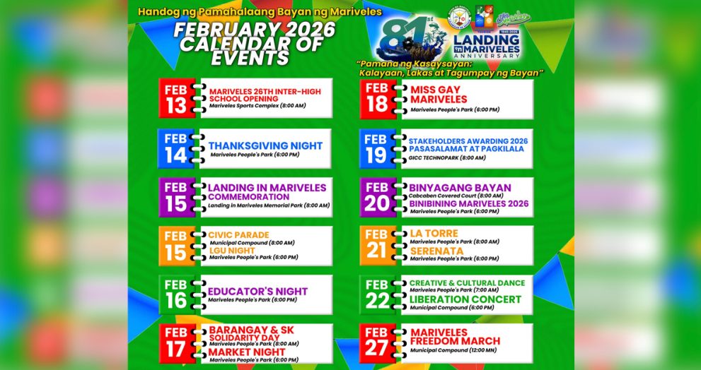 Nagsimula na ang masiglang calendar of activities para sa 81st Landing Anniversary celebration sa bayan ng Mariveles na tatagal mula ika-13 hanggang ika-27 ng Pebrero. Pinangunahan nina Mayor AJ Concepcion, Vice Mayor Jesse Concepcion at iba pang mga opisyal ng bayan ng Mariveles ang pagbubukas ng 26th Mariveles Inter-High School Sportsfest na sinundan kinabukasan ng […]