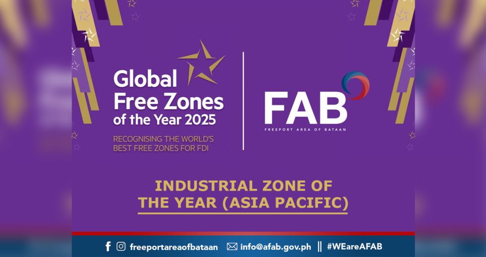 Kinilala ang Authority of the Freeport Area of Bataan (AFAB) bilang Industrial Zone of the Year – Asia-Pacific sa prestihiyosong Global Free Zones Awards 2025 na inorganisa ng fDi Intelligence, isang dibisyon ng Financial Times Group.   Ang naturang parangal ay taunang iginagawad sa mga free zones at industriyal na lugar sa buong mundo na […]