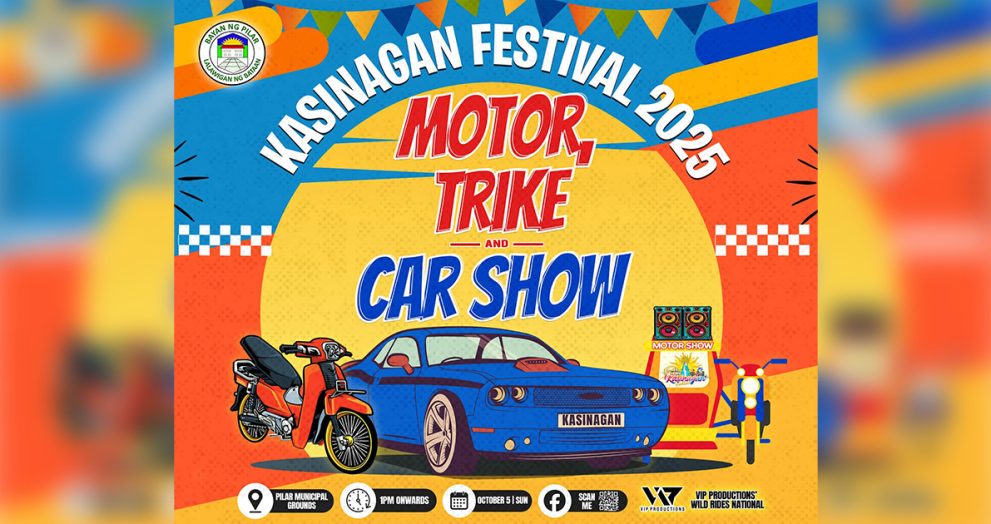 Isa sa pinakahihintay sa darating na Kasinagan 2025 Festival sa bayan ng Pilar ngayong ika-6 ng Oktubre ay ang motor show ng mga kotse, motorsiklo at mga tricycles. Ayon kay Mayor Charlie Pizarro nagpalabas na siya ng imbitasyon sa lahat ng mga interesadong may ari ng mga sasakyan, kotse man ito, motorsiklo o tricycle […]